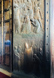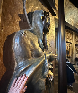 And here I place my hand on the first Porta Santa , on one of the many polished spots in the bronze relief. Later I come back for a photo of the two magnificent wings without the throngs of pilgrims, take two shots – and then head back out. That was the plan.