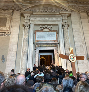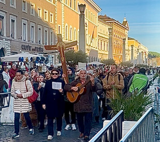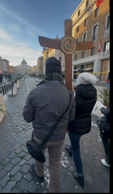 The iubilaeum25 app helps; the Vatican, in its Jubilee Year 2025, is IT-savvy. Registration with all biographical data, booking of date and time, meeting at Piazza Pia, picking up a prayer slip at the Info Point, waiting at a barrier – with the dome of St. Peter's Basilica already in sight – until a manageable group of 20-40 pilgrims has gathered, and a volunteer hands a light wooden cross to the first person in line, raises the barrier, and the pilgrimage procession sets off in step, praying or singing.