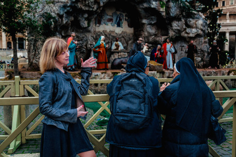 It's worth going outside. Piazza San Pietro is sparkling with Christmas lights.