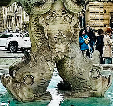 Ähnlich erhielt die abzweigende Via Vittorio Veneto - lange vor ihrem Ruf in den 1950er-/1960er-Jahren alsmondäner Hotspot der rich and famous - mit Berninis Marmorskulpturen ein kulturelles Uplift. Der Künstler dachte bei der Fontana delle Api (1644) zunächst an eine nützliche Pferdetränke. Im Sinne seiner Geldgeber integrierte er dann in die Muscheltränke die Wappentiere der Familie (Bienen - api) und trug so zu einer weiteren Hommage an den einflussreichen Barberini-Clan bei. Und natürlich ließ sich der päpstliche Sponsor in der Muschelinschrift verewigen.