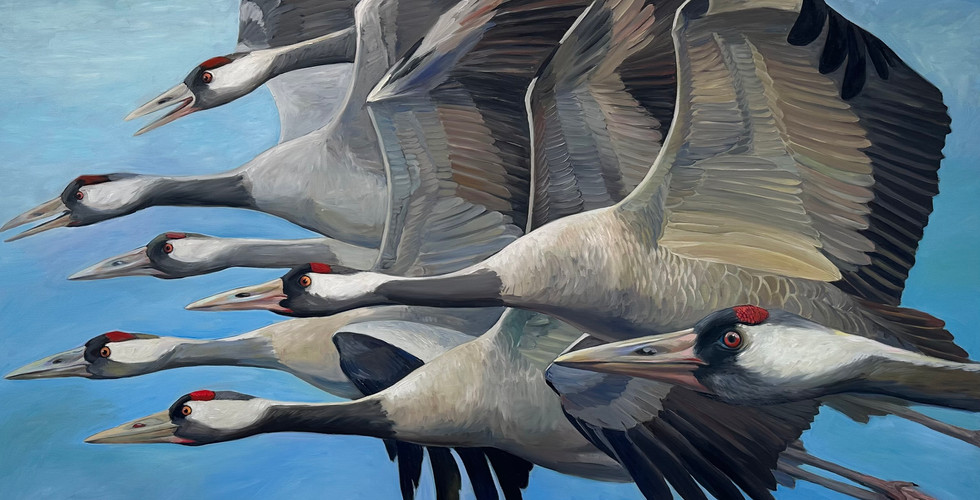 sowie Unikat-Schmuck und Skulpturen von Violeta Vollmer, deren gigantisches Kranich-Bild in die Gemeinschaftsausstellung im Schloss Caputh (01) gezogen ist.