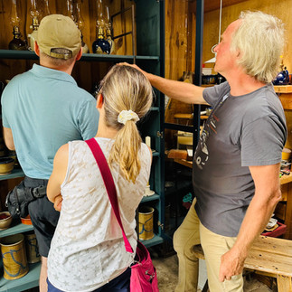 In der Keramikwerkstatt (11) empfangen mich der Caputher Matthias Panser (re) und sein Freund Detlef David aus Gottsdorf / Fleming, zwei kundige Kenner am Brennofen und Berater am Verkaufsstand.
